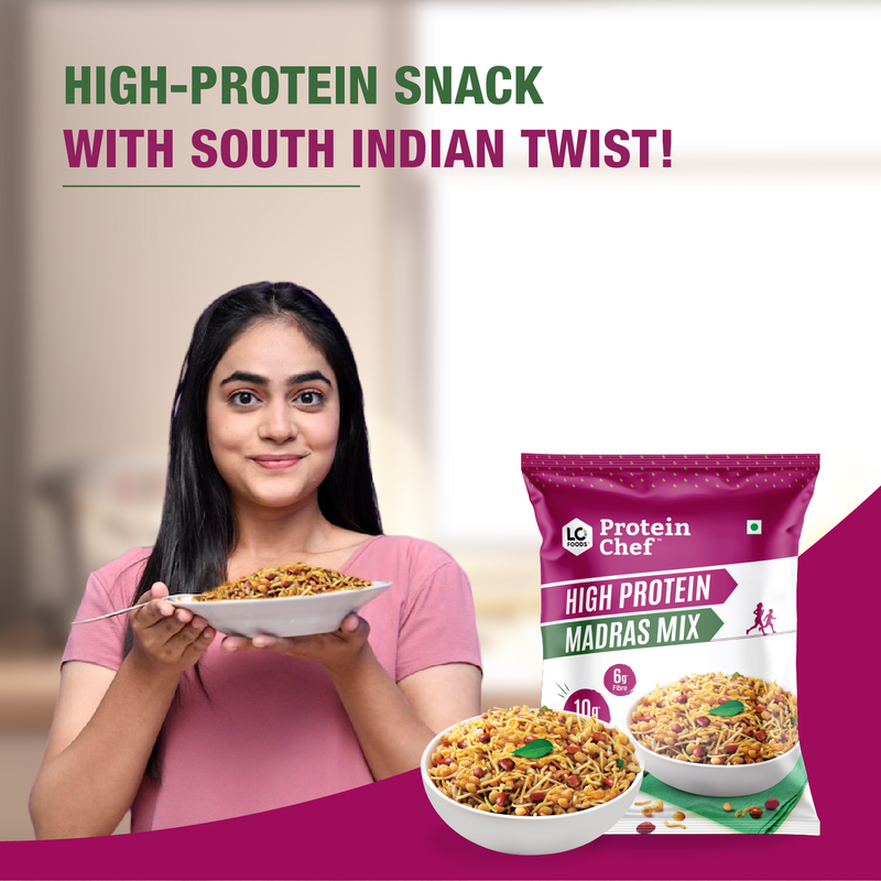 This namkeen is made with high-quality ingredients such as lentils, pulses, nuts, and spices, all blended to create a protein-rich, fiber-packed, and flavorful snack inspired by South Indian cuisine.